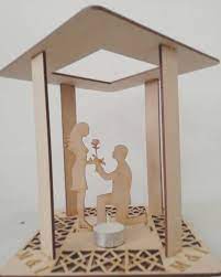 Piezas decorativas grabadas en madera o acrílico para el centro de las mesas.