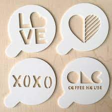Esténciles de plástico o madera para decorar bebidas con polvos como canela o chocolate.