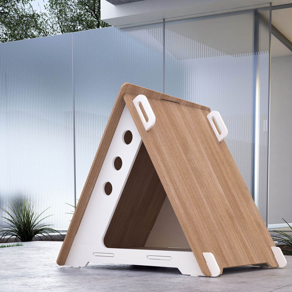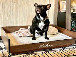 Camas de madera o acrílico grabadas con diseños especiales para proporcionar comodidad a perros y gatos.