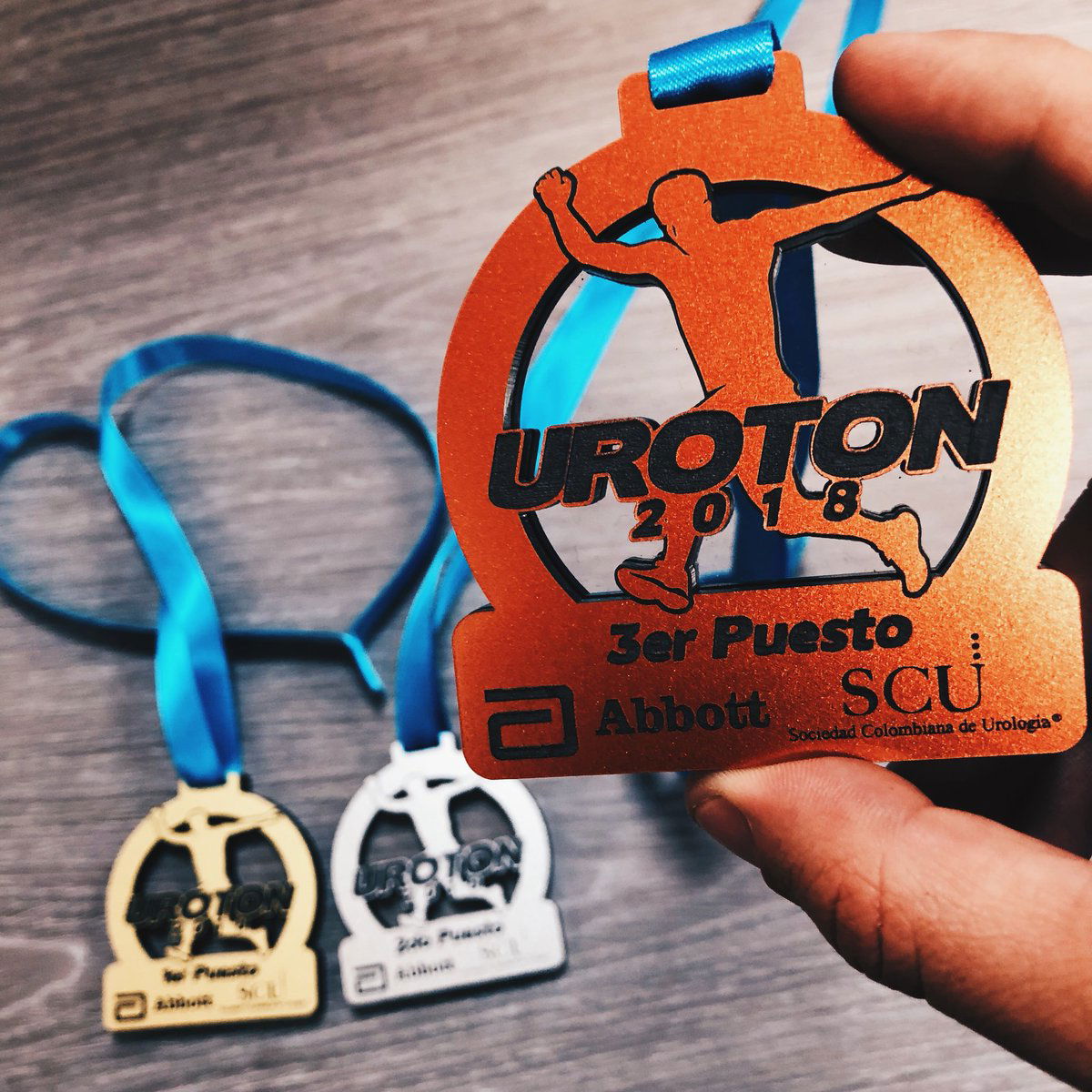 Medallas de metal o madera grabadas con nombres o diseños específicos para eventos deportivos o logros individuales.