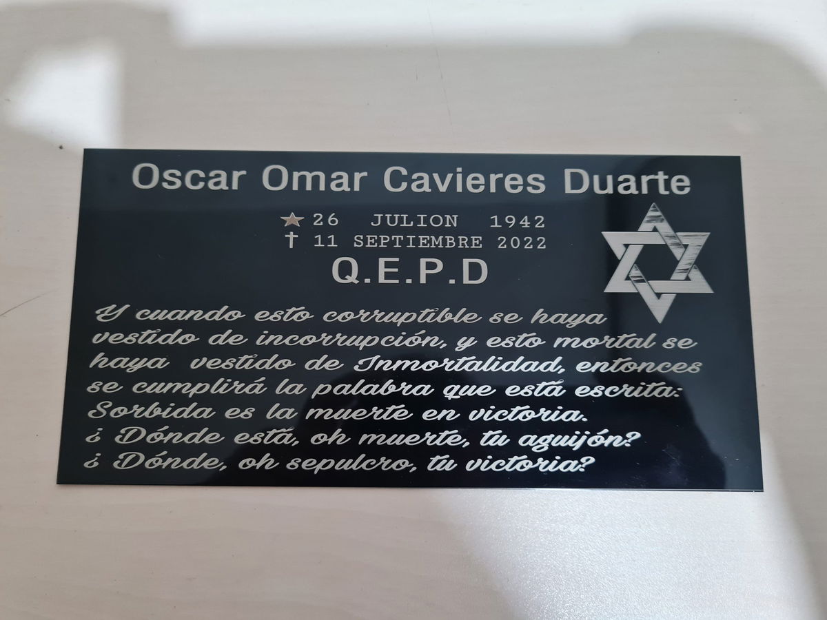 Nuestro servicio de placas grabadas con corte láser ofrece una amplia variedad de opciones personalizadas para reconocimientos, homenajes y eventos especiales. Grabamos con precisión nombres, fechas, logotipos y diseños en una variedad de materiales como metal, madera, granito, mármol y acrílico. Desde placas de agradecimiento hasta conmemorativas, nuestras placas ofrecen durabilidad y un acabado de calidad que resalta la importancia y el significado detrás de cada homenaje. Contamos con opciones de diseño flexibles para adaptarnos a diferentes estilos y ocasiones, y nuestro equipo está comprometido con entregar productos que reflejen la importancia y el valor de cada momento especial.